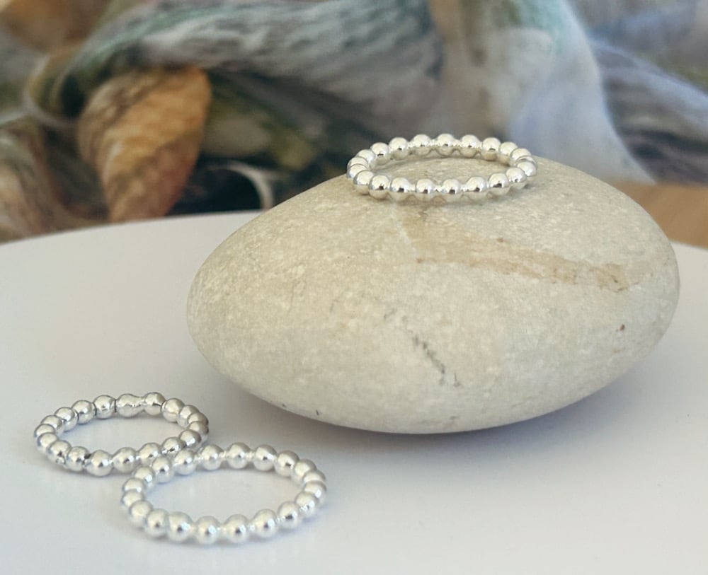 Perfectly rounded spheres are playful and polished. This solid sterling silver bobble ring is stackable and effortlessly chic - Beautiful worn solo or layered for impact.